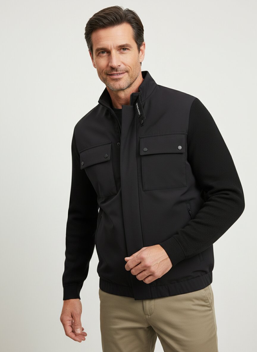 Hybrid-Jacke mit wasserabweisenden Kontrastpartien in Schwarz